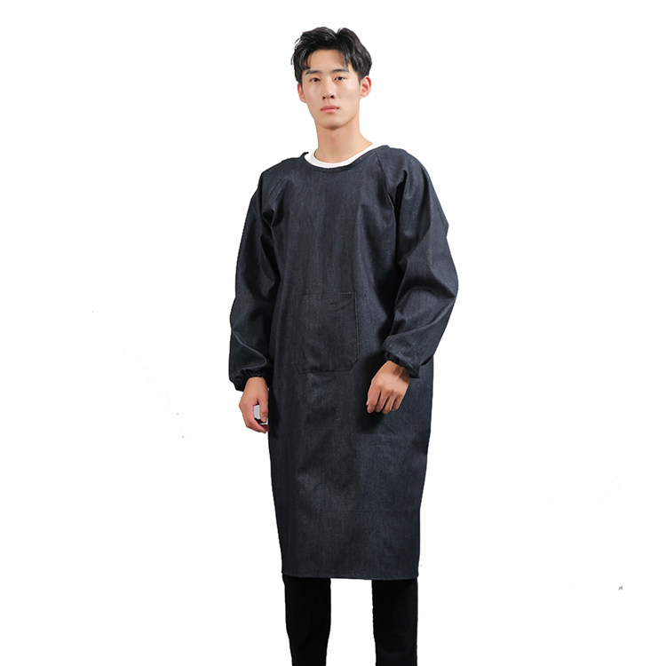 Wear-resistant denim coat reverse wear long-sleeved men's thickened overalls apron long coat tooling can print LOGO