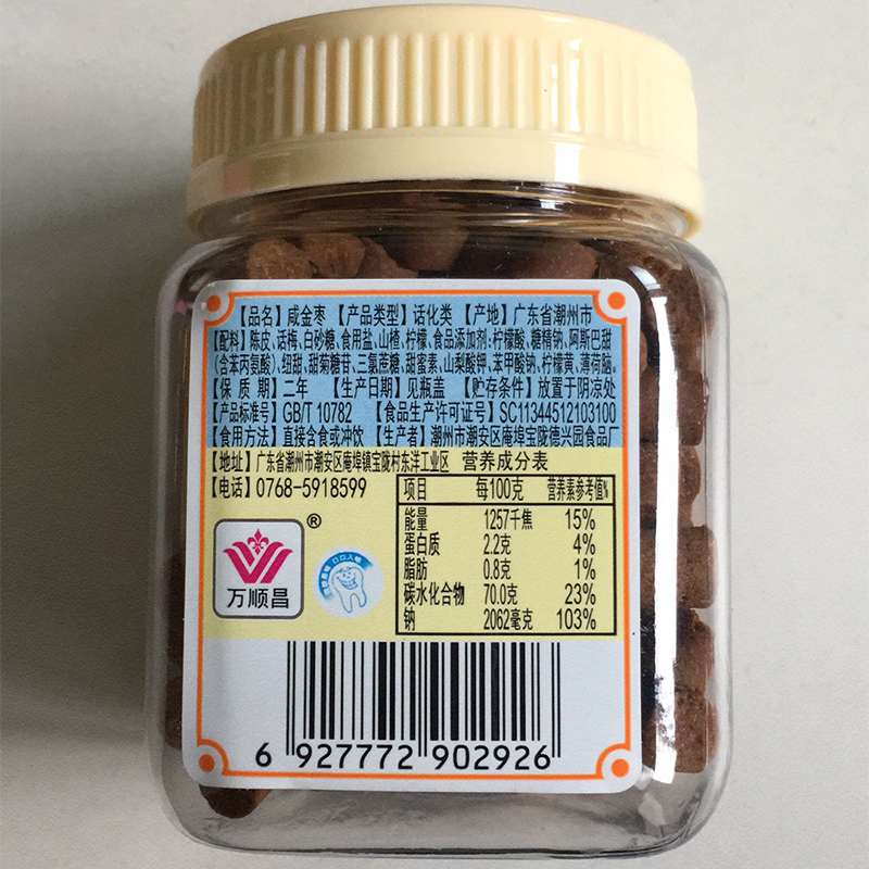 Wanshunchang salty gold jujube Yanjin jujube tangerine peel talk Meidan rat feces salt gold jujube 108g Chaoshan snack specialty
