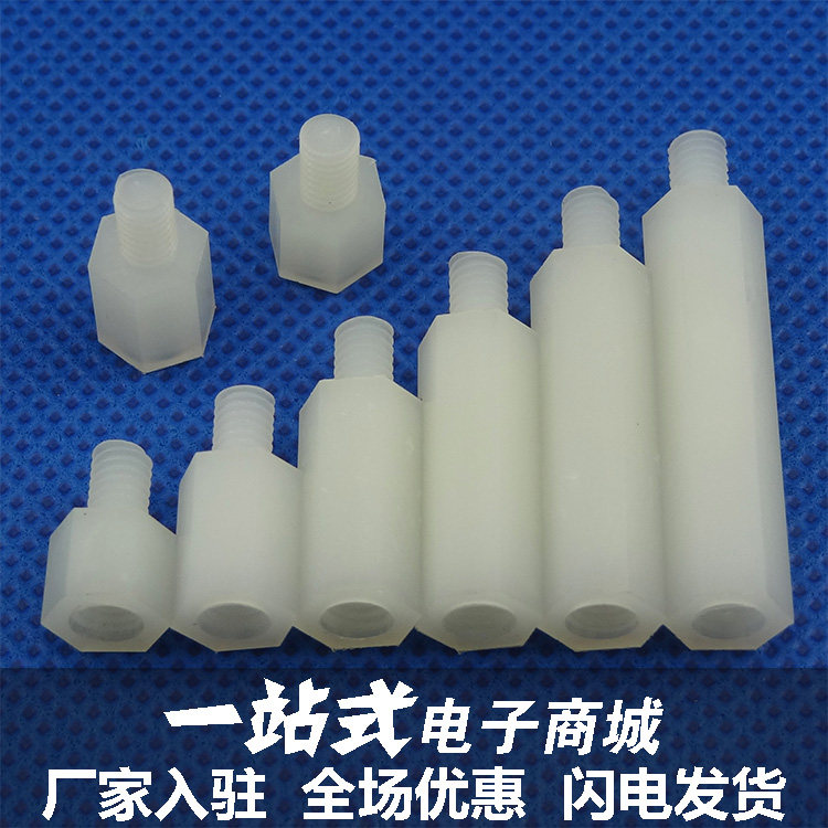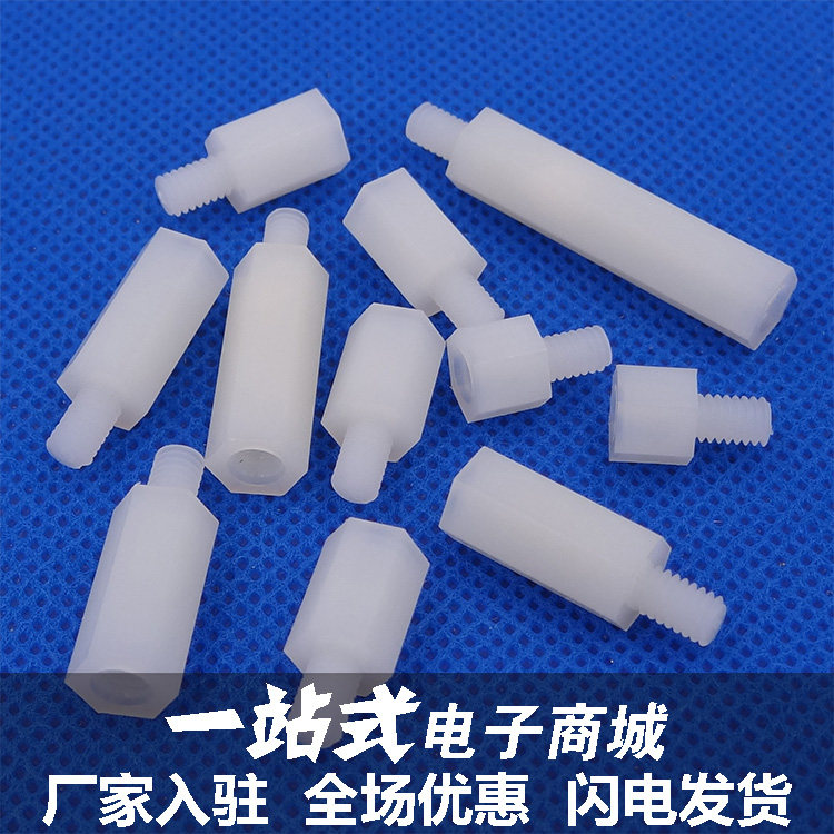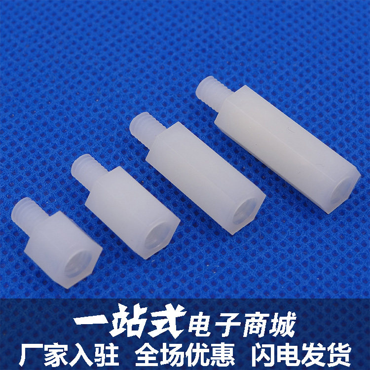 Hexagonal nylon column single nylon screw insulated plastic support column plastic cylinder isolation column M3