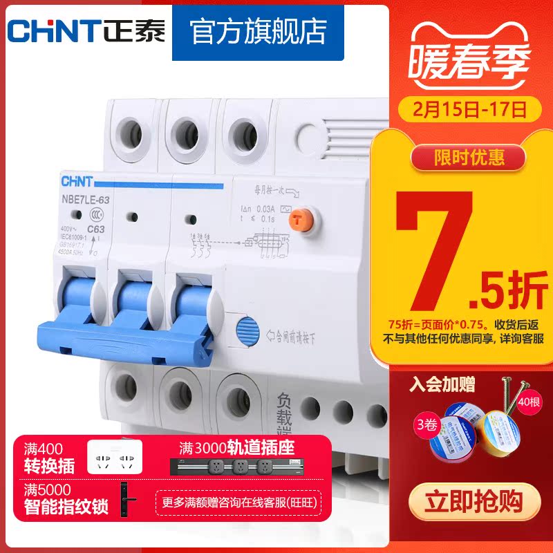 Astronergy leakage protector three-phase circuit breaker NBE7LE 3P 63A with leakage protector air switch