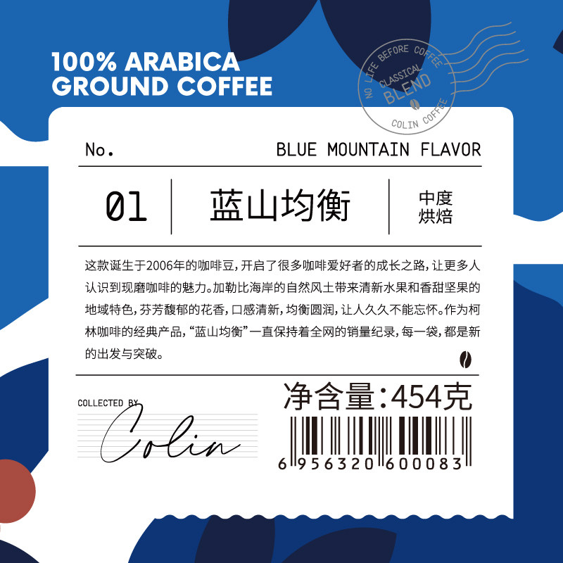 Colin Blue Mountain Balanced Coffee Blue Mountain Coffee Beans Fresh Hand Filled Black Coffee American Coffee Powder 454g