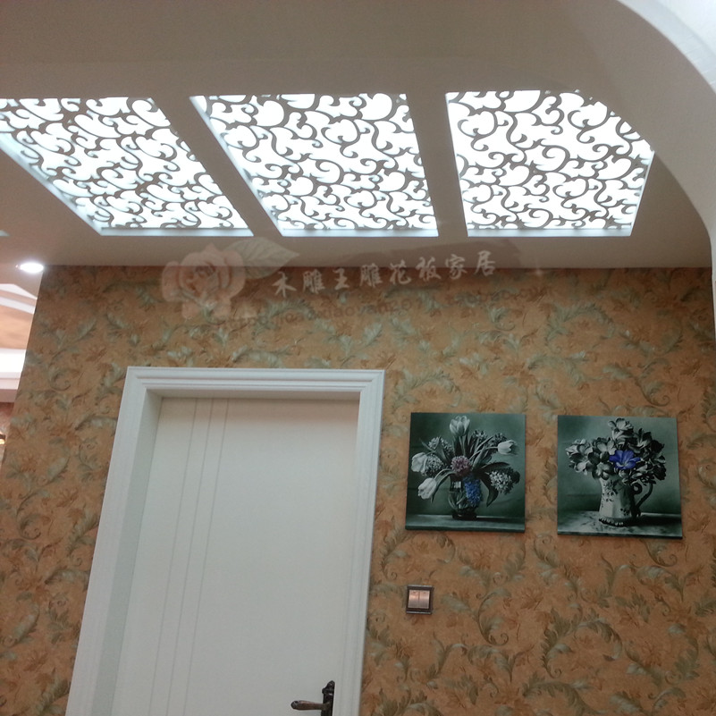 Lingen Grain Carved Flower Board Suspended Ceiling Foreign Flower Density Board Hollowed-out Flower Lattice Background Wall Brief Eme Aisle Board Decoration