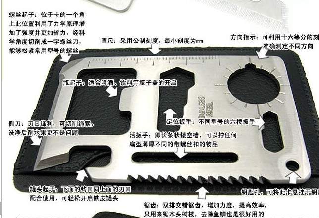 Stainless steel thickened super hard outdoor multi-function saber card universal knife card life-saving card camping tool card