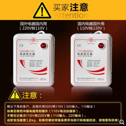 Shunhong voltage converter 220V to 110V 500W transformer ordinary version (national)