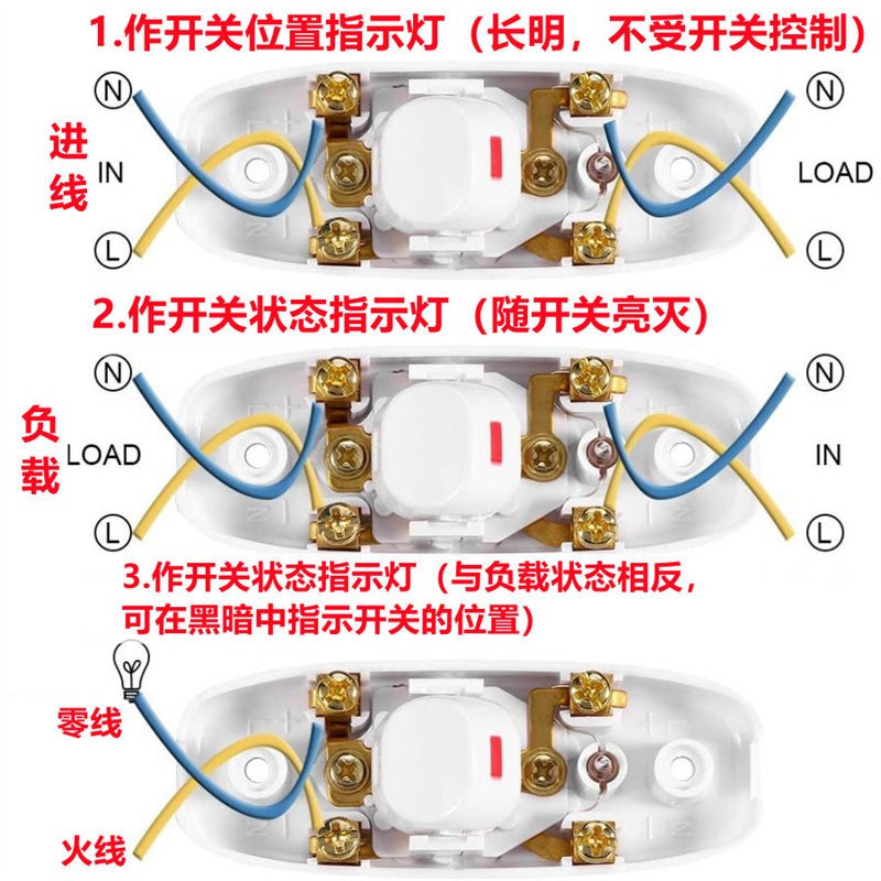 Headboard switch high-power button home old style with LED midway table light fan small switch 10A