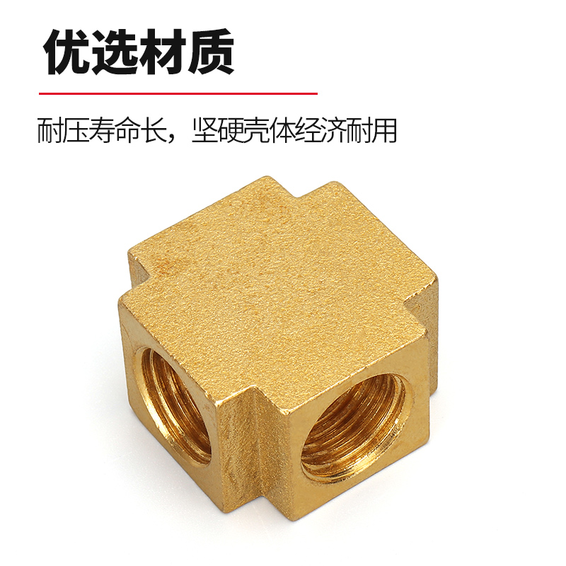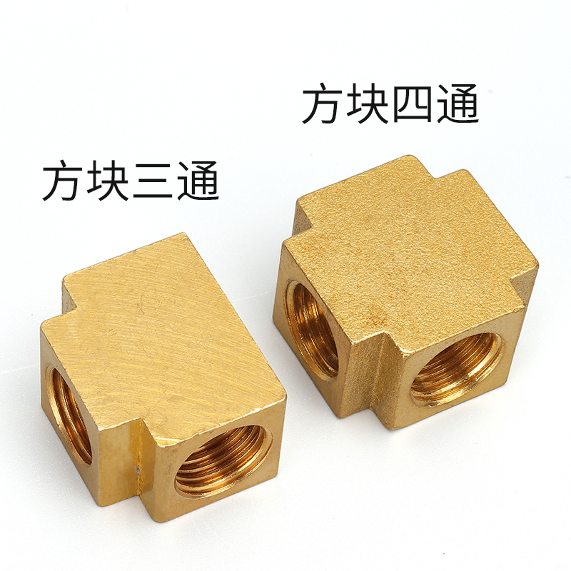 Pneumatic trachea copper joint water pipe fittings 2 sub-three internal wire copper three-way square Tetris PT1 4 tooth block four-way
