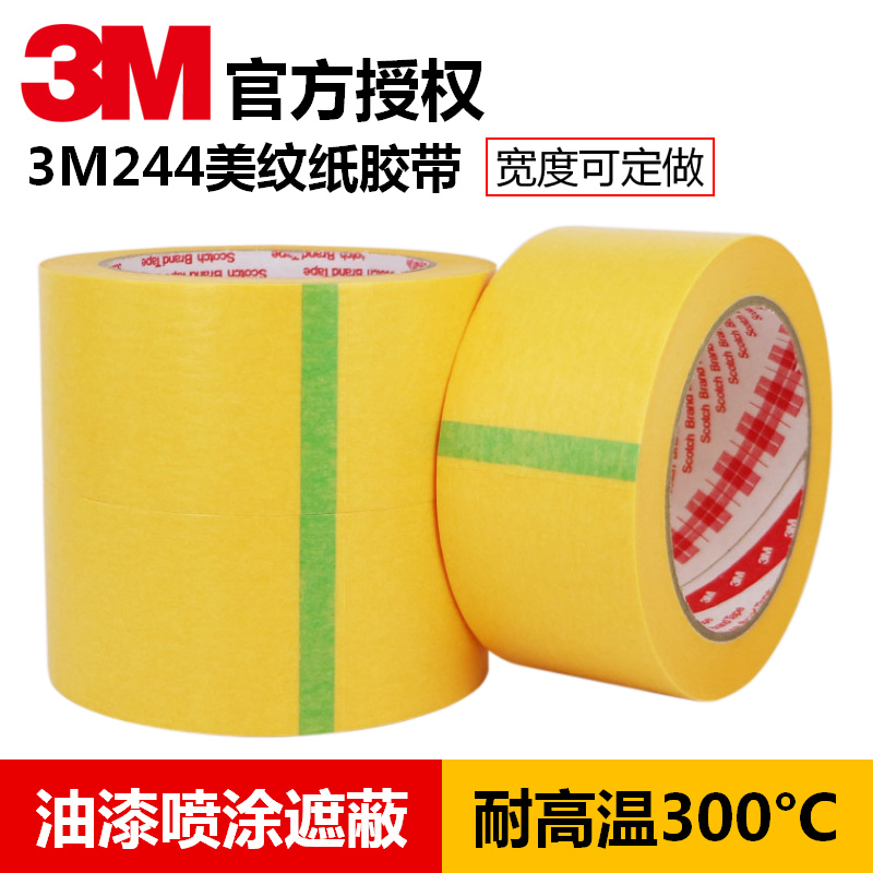 3M244 masking tape Yellow high temperature solder-proof adhesive Car spraying masking color separation non-residual adhesive American paper and paper