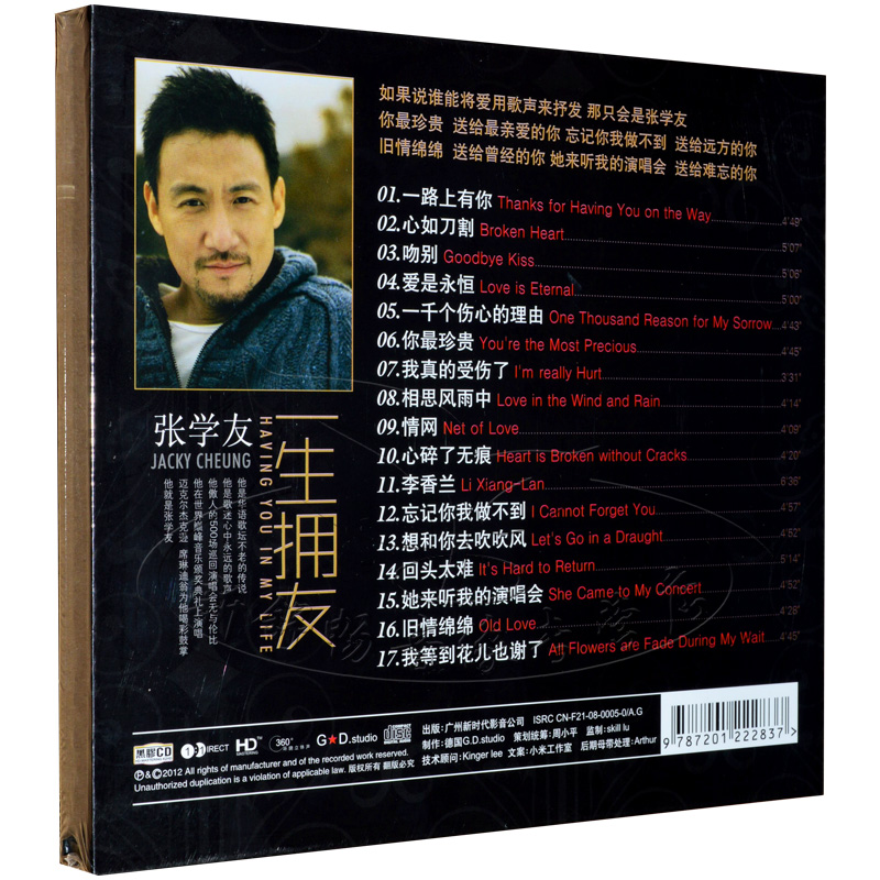 Zhang Xueyou's genuine CD CD lifetime has black glue CD on-board car pop music CDs