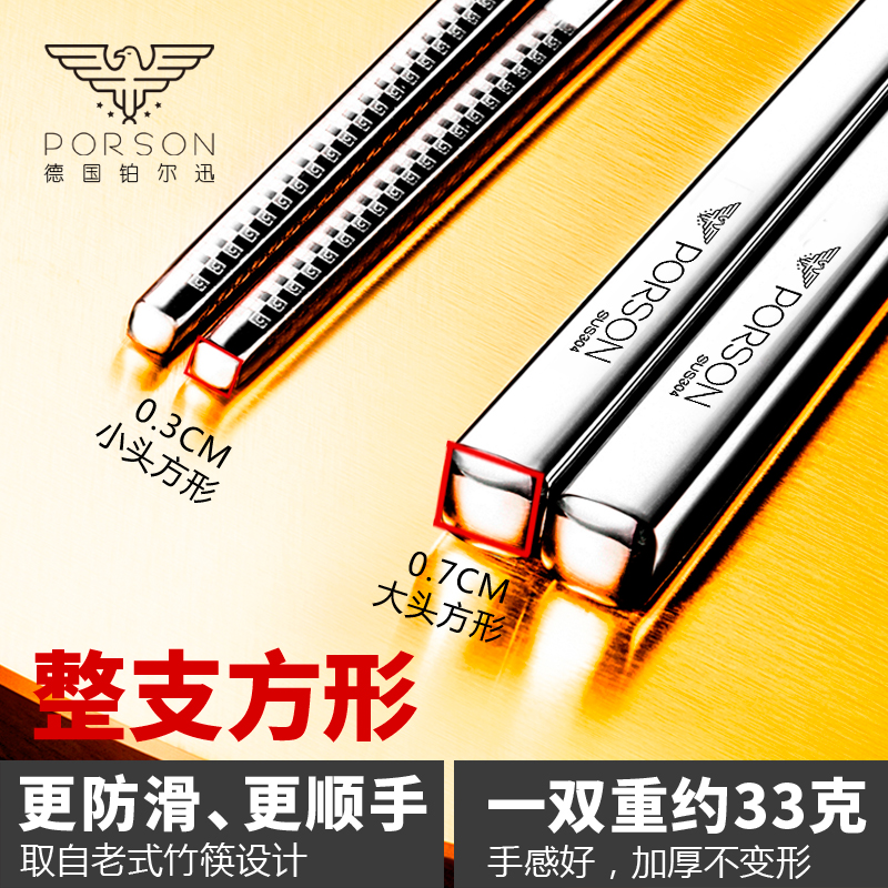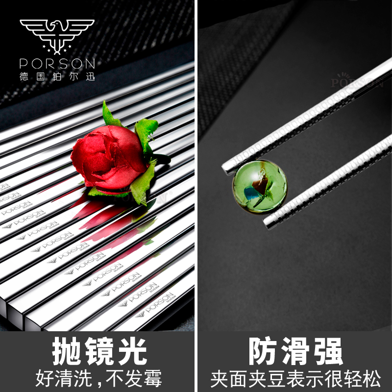 Germany PORSON antibacterial stainless steel 304 chopsticks household non-slip one person one chopstick metal silver high-grade 316 Kuaizi