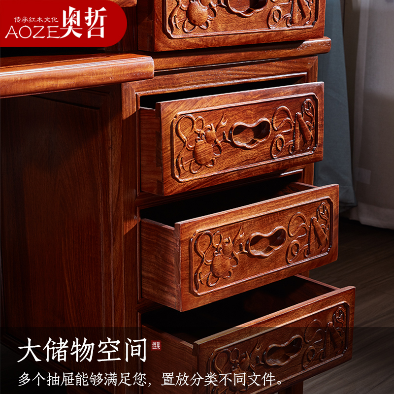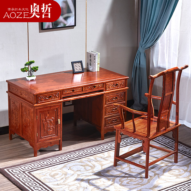 Aozhe mahogany desk hedgehog red sandalwood solid wood desk Chinese antique rosewood desk furniture A-A09