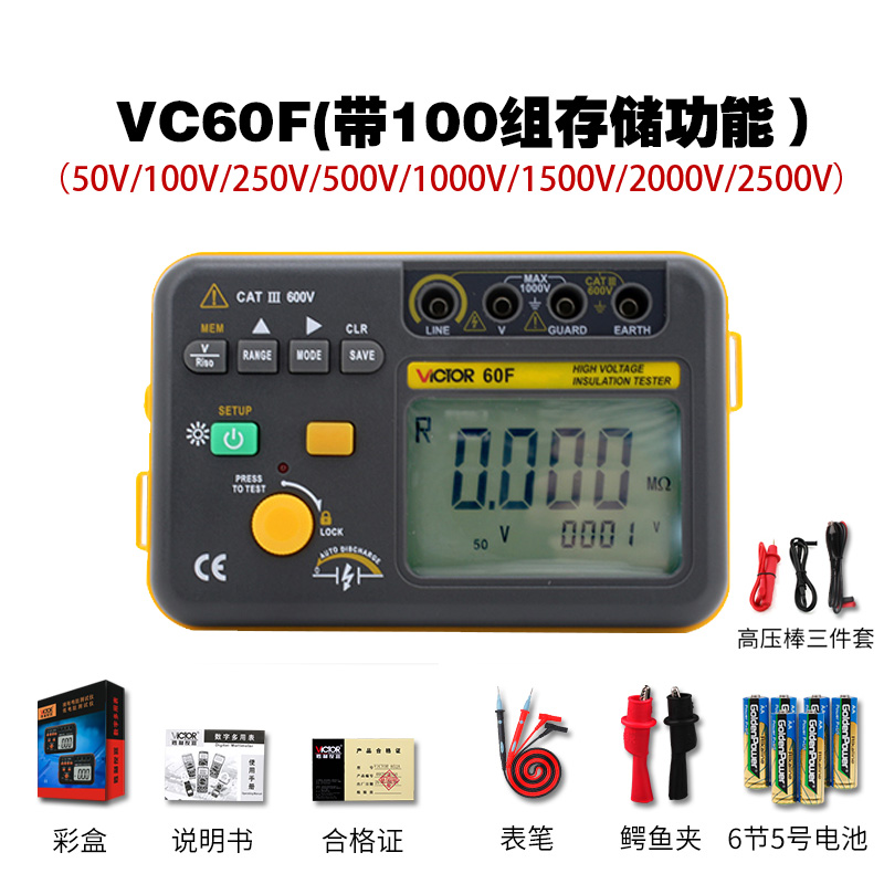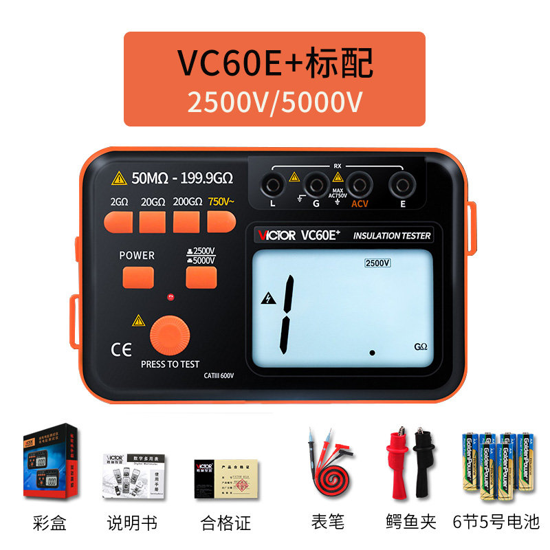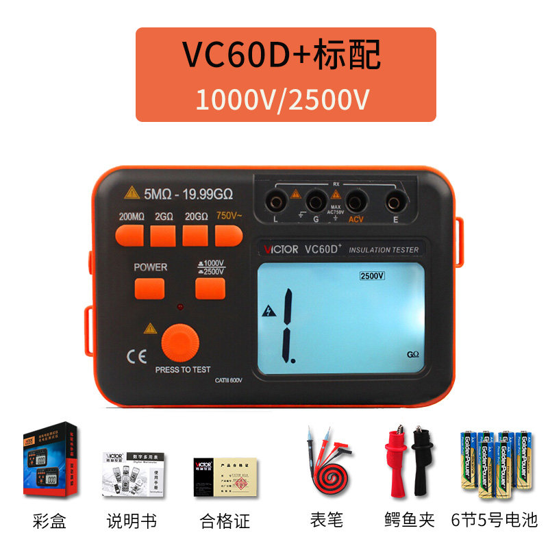 Victory digital insulation resistance tester VC60B Megohm meter 500V 1000V electrical shake meter