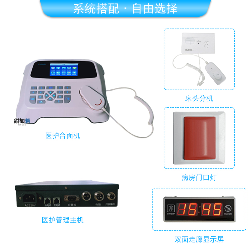 Calling host Calling table machine Corridor double-sided display Ward door light Medical signboard (single window) Medical signboard (dual window) Dressing room emergency button 1 dressing room emergency button 2 single embedded