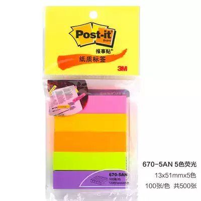 United States 3M post-it 550R Newspaper sticker Quality indicator label Sticker Note paper Key logo Reading classification Memo sticker Fluorescent color strip 5 colors 500 sheets pack