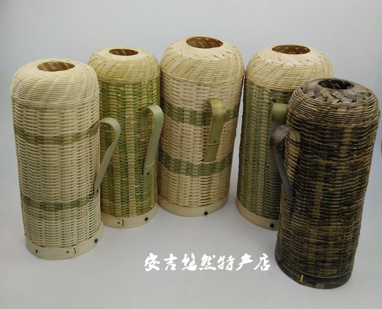 Bamboo-made hot water bottle cover Bamboo water bottle shell Slanted Open Water Bottle Shell Classic Antique Kettle Housing Hand Woven Bamboo Products