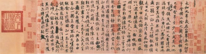 The first book of retro - painting in the world is Wang Xizhu Langting Order Shenlong version of the Forbidden Palace version has been framed