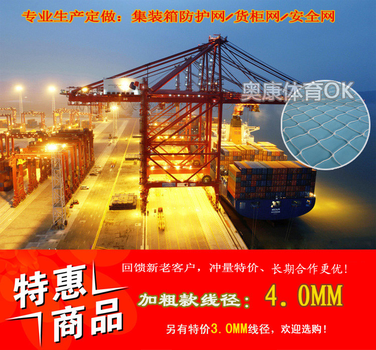 Add coarse 4mm containers protective netting 20 feet 40 feet flat cabinet high cabinet anti-fall net safety net anti-fall net