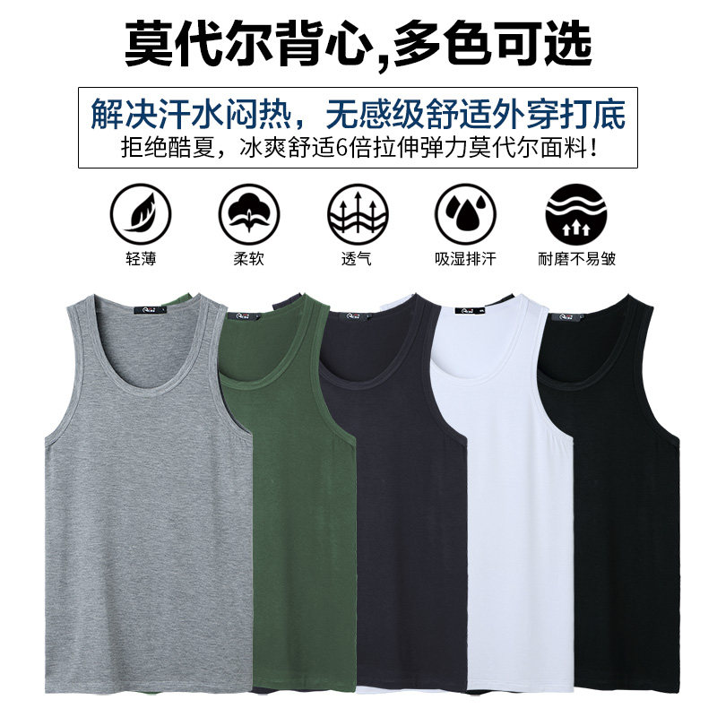 Summer thin breathable modal ice silk vest men's bottoming tight solid color sports fitness wide shoulder sleeveless vest