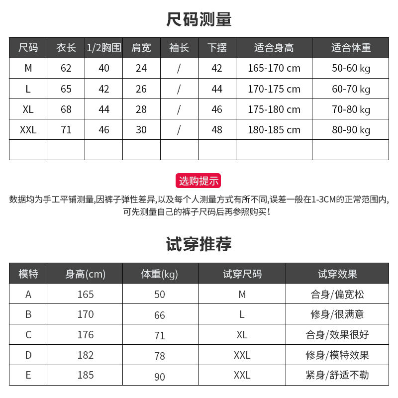 170 M 175 L 180 XL 185 XXL