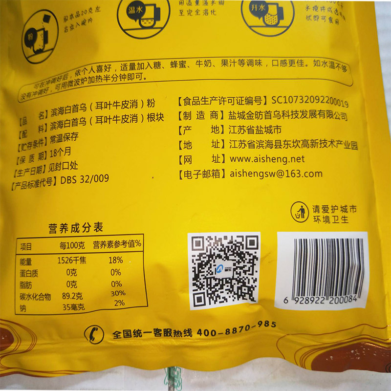 Salt City Binhai Teryield Love raw brand pure fleece-flower powder Powder Fine Powder Jiangsu Many Years Raw White Fleece-Flower Root Powder Co.