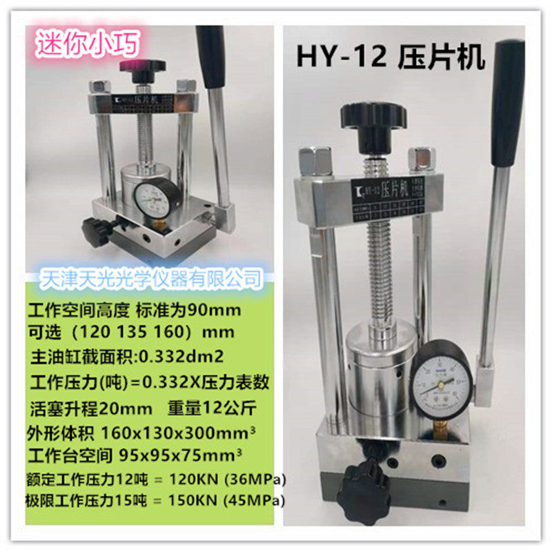 Infrared tablet press HY-12 small manual powder hydraulic hydraulic spectrometer accessory 15 tons laboratory mold