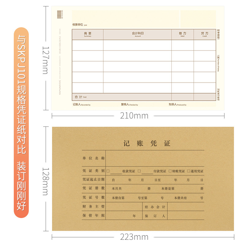 Sima form accounting certificate cover back cover with back cover 446-128mm universal blank certificate kraft paper cover Z010124 UF financial accounting supplies