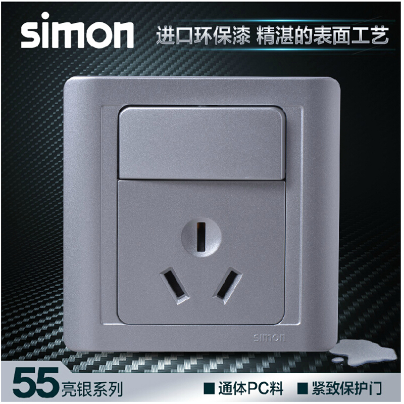 Simone switch socket silver 10A open triple hole with switch for panel 86 type wall N51083B-57