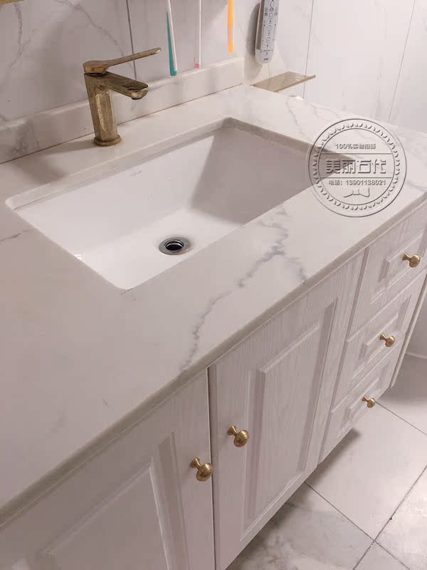 Custom washing table surface quartz stone bath cabinet table top white stone hand wash table dressing room table surface