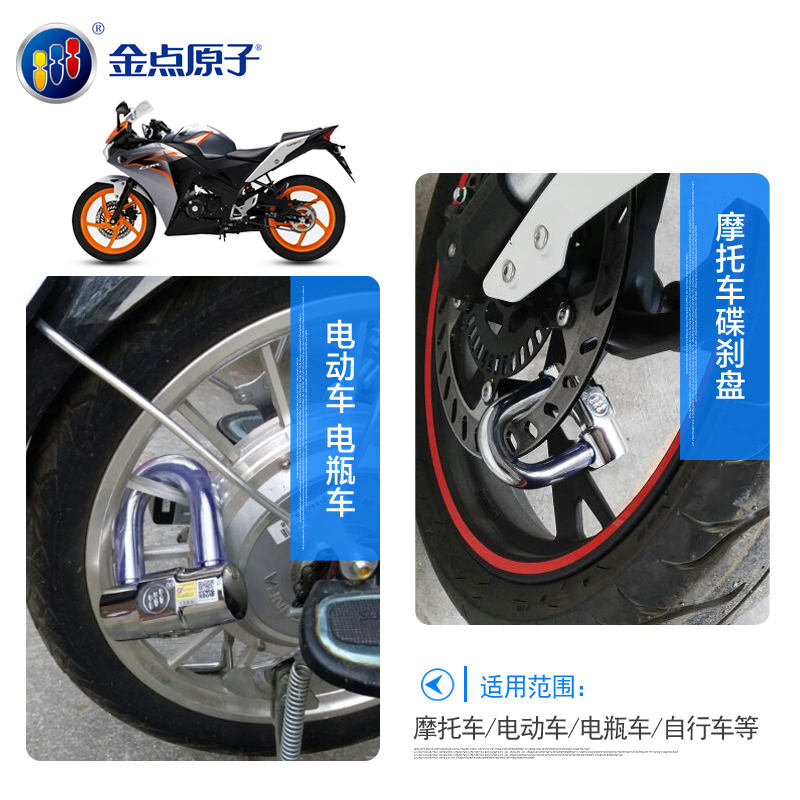 Golden pin atomic motorcycle disc brake lock Small U-shaped lock Electric car bicycle anti-theft small disc brake lock