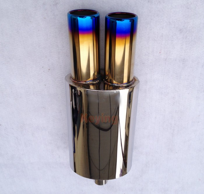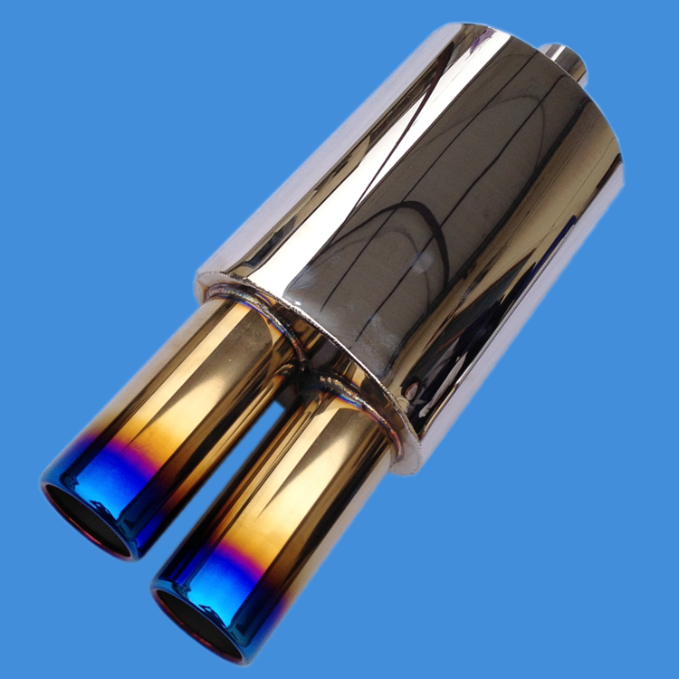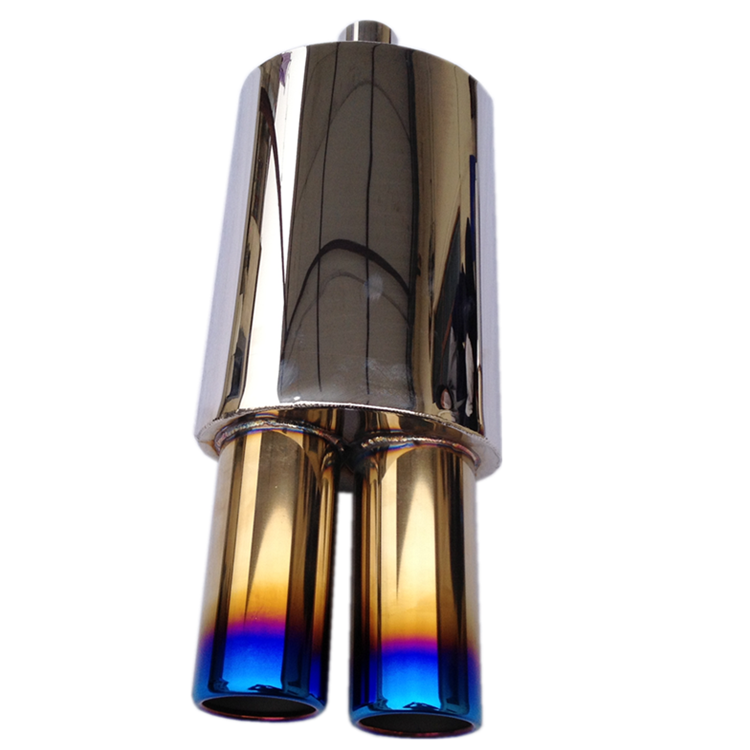 Automotive Stainless Steel Retrofit Double Pipe 76 Curled Double Out Titanium Blue Tailpipe Flat Drum Straight Drain Pipe Taildrum Retrofit