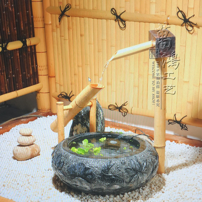 Handmade bamboo and wood dripping water suit Jinglu Japanese garden Bamboo running water Bamboo Zen ornaments Anti-corrosion bamboo decoration