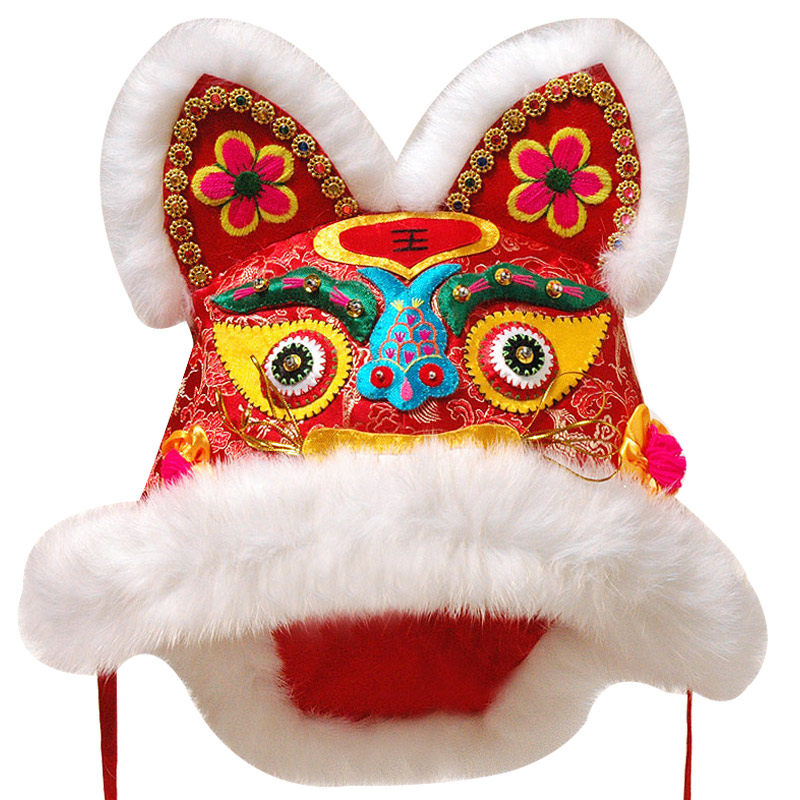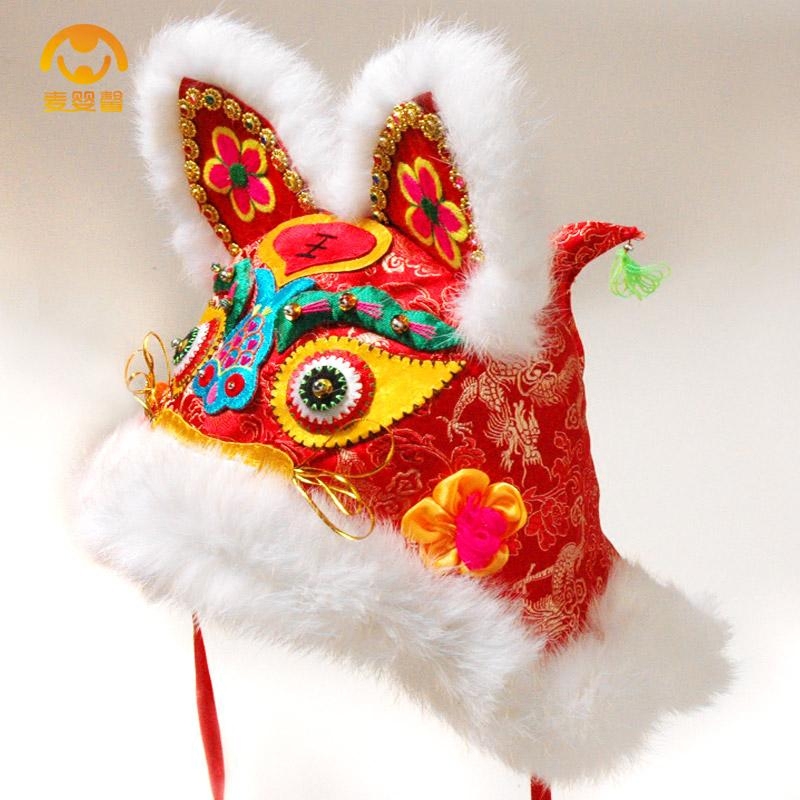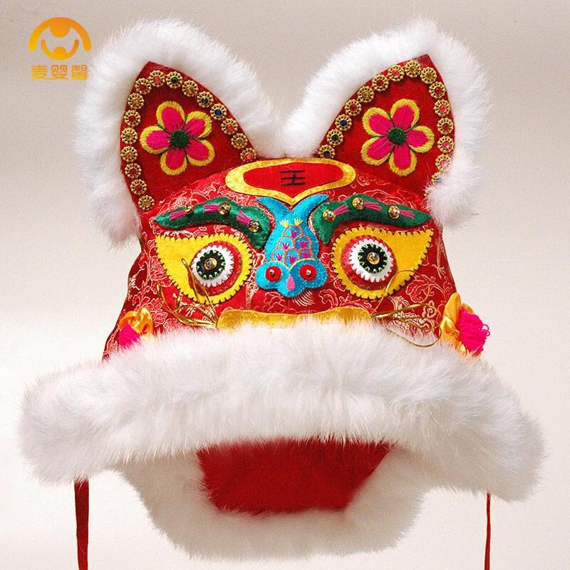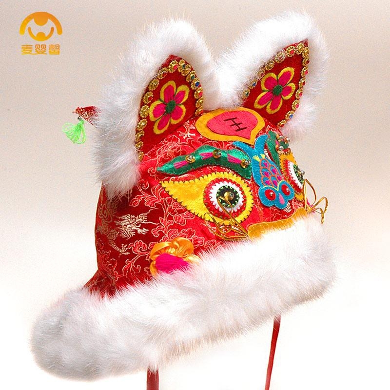 Collection Gift Tiger Hat Real Rabbit Fur Handmade Baby Cotton Hat Men and women Children's red baby tiger head hat