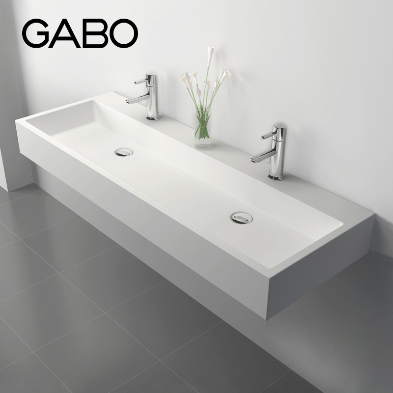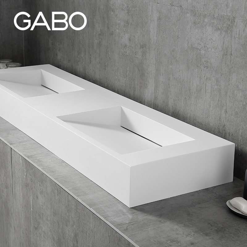 On the exhibition stage, the basin artificial stone art basin household wash basin 10147 wash basin square hanging wall bathroom double groove wash basin