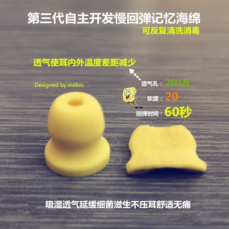 Mirren in-ear headphones dedicated memory slow rebound inert sponge earbud cap is comfortable and breathable for a long time without pain