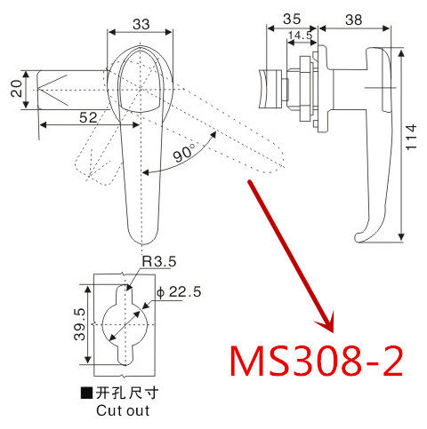 Distribution box door lock rain-proof lock MS308-3 power distribution cabinet door lock MS308-2 stainless cabinet door lock control cabinet