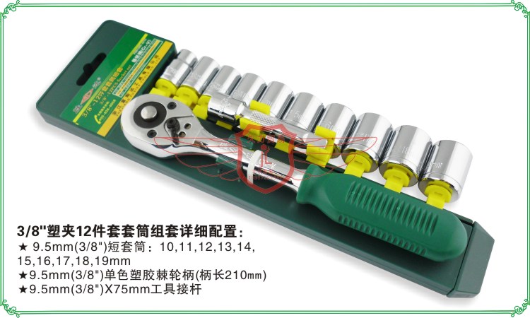 Shengda 38 8 "12 pieces plastic clip sleeve tool combination set 6 Angle machine repair hardware sleeve