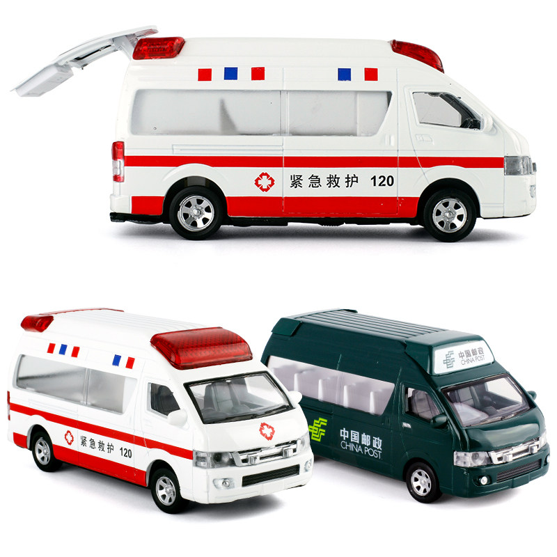 120 Ambulance China Post Express van Acousto-optic alloy pull-back children's simulation car model toy