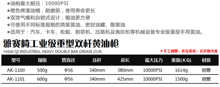 Hong Kong Yasaiqi high-grade double exhaust grease gun high pressure flat nozzle manual gun AK-1100 AK-1101