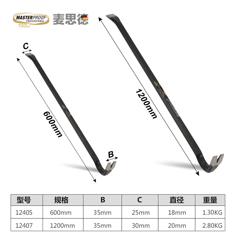 German Maxde hexagonal crowbar industrial vehicle steel crowbar for dismantling wooden boxes and wooden frames carpentry crowbar special steel flat head