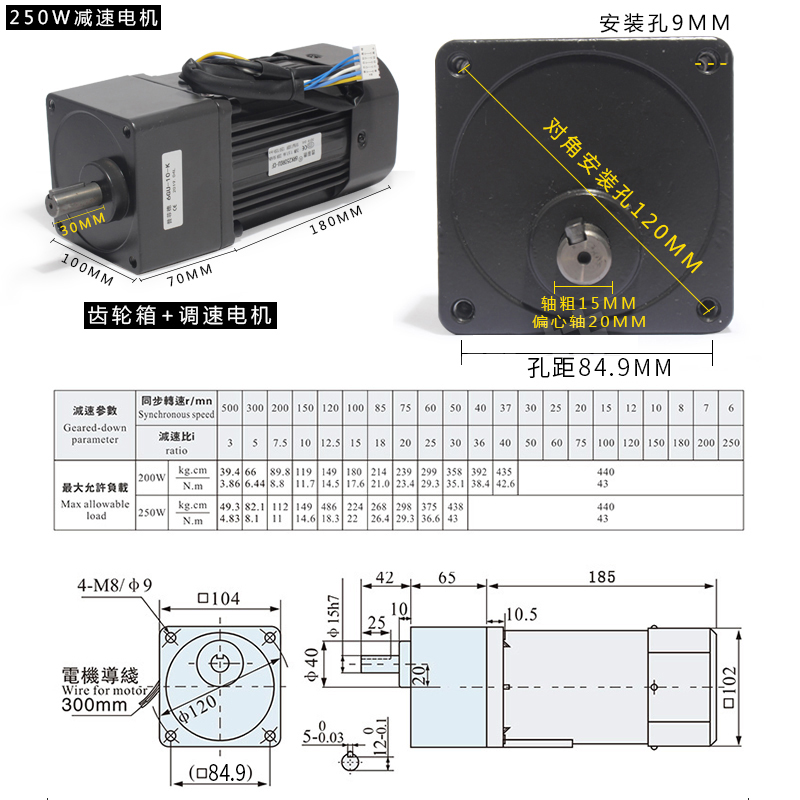 The optical axis motor does not match the gearbox (0-1350 rpm gearbox motor (0-1350 rpm gearbox 6GU3K (0-450 rpm one minute gearbox 6GU5K (0-