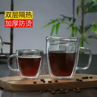 Glass glass heat-resistant transparent double-layer Cup with lid double insulation thick coffee tea cup creative beverage cup