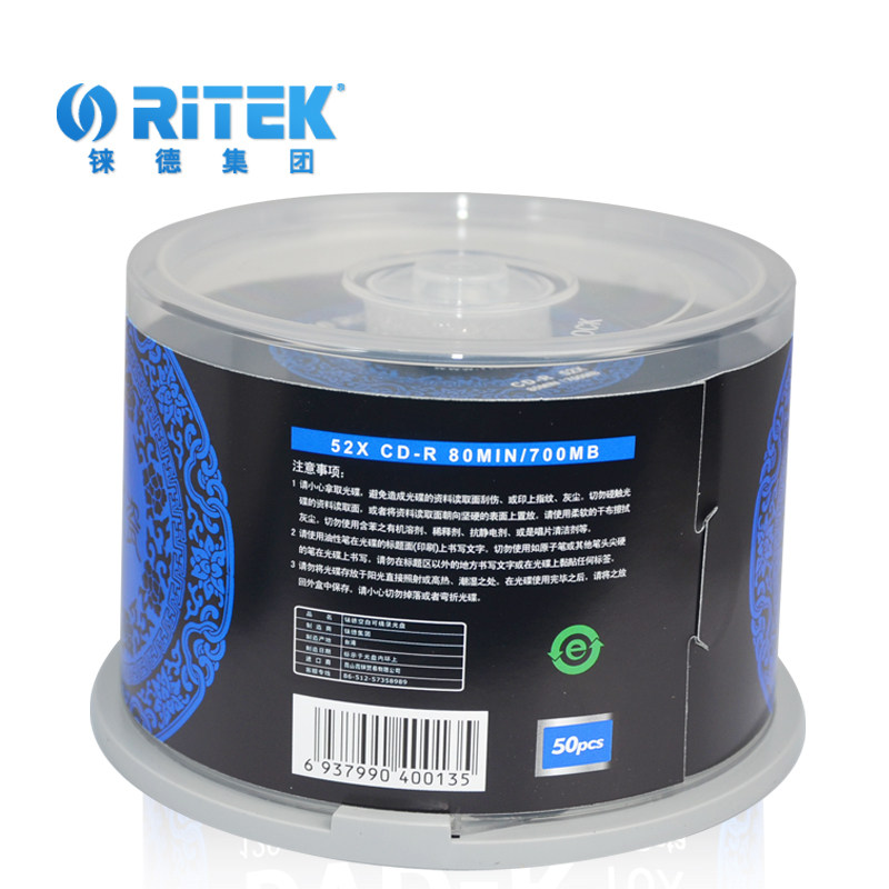 Ritek rhenium blue and white porcelain CD-R blank vinyl disc 52X cd-r burning disc music disc