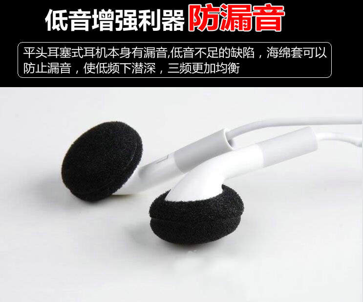 Flat head headphone sponge sleeve non-slip bass reinforcement phone earplug headphone cotton earplug film ear cotton cover