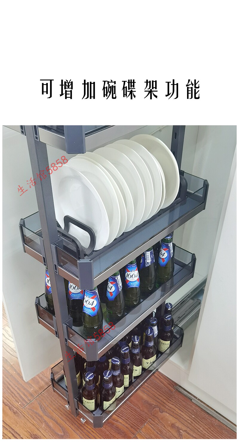Luxury Overall Cabinet High Cabinet High Body Large Monster Pull Basket Aluminum Alloy Drawer Open Type Bowls Dish Wine Cabinet Pull Basket Damping Rail