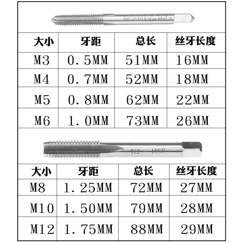 black screw tapping M3 black screw attack M4 black screw tapping M5 M6 black screw attack M8 black screw tapping M10 black screw tapping M12 black screw tapping M14 black screw