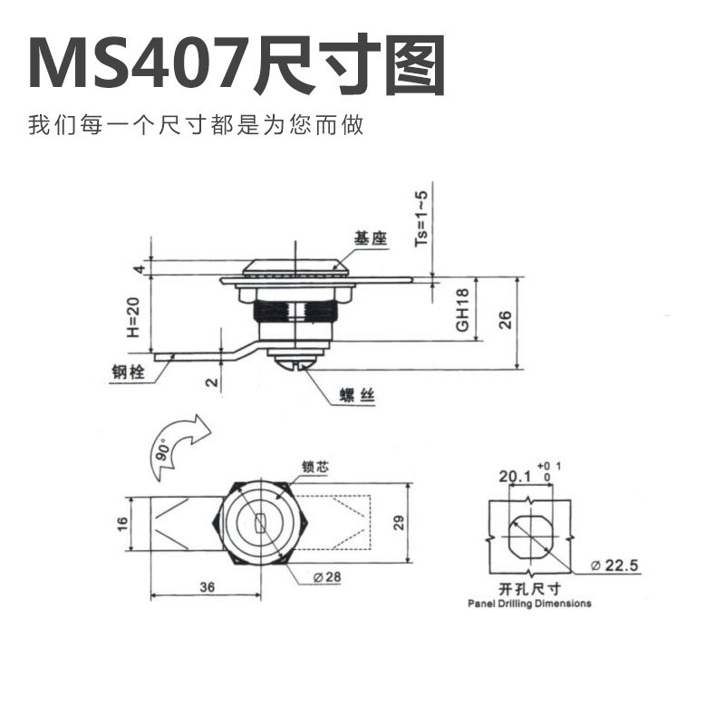 Haitan MS407 tongue lock distribution box cabinet door lock telecom box lock waterproof lock core Black White