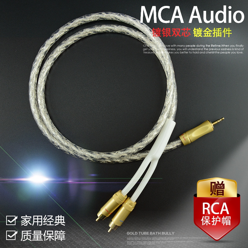 American MCA Fever Silver plated 3 5mm 10% Two RCA Double Lotus HIFI Audio Line Flat Panel Sound