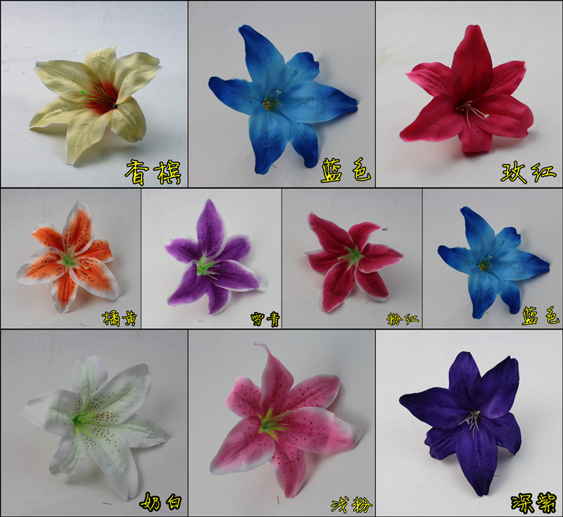 Simulation lily flower silk cloth flower flower arrangement accessories single lily wedding pastoral DIY flower head simulation flower