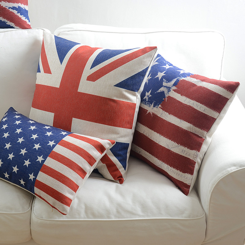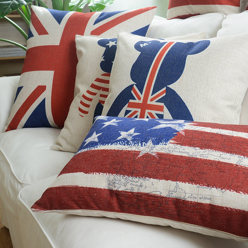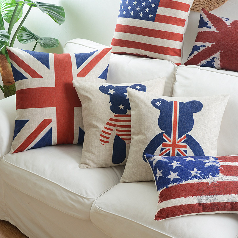 Nordic cute bear British American flag pillow thick cotton and linen cushion car backrest living room sofa pillow model room