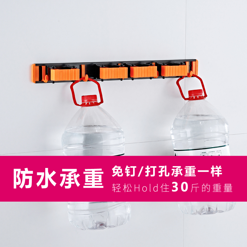 Space aluminum mop rack multi-functional with hook broom rack plastic rag hook towel foot cloth bathroom hook free punch
