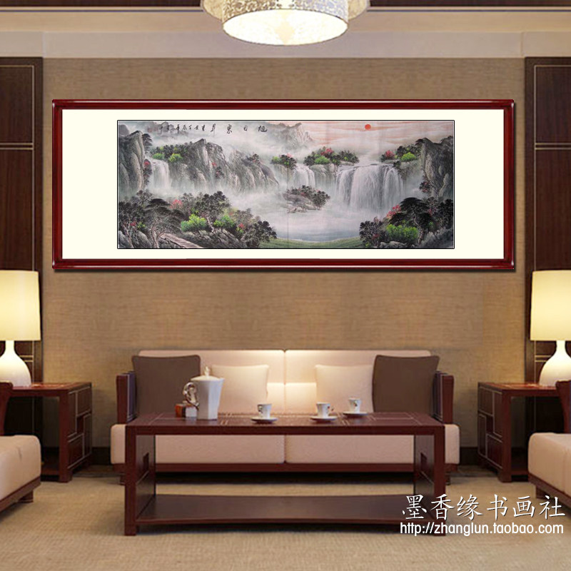 Landscape painting living room rising sun Chinese painting cornucopia Feng Shui painting Sino-American Association pure hand-painted calligraphy and painting works calligraphy and painting
